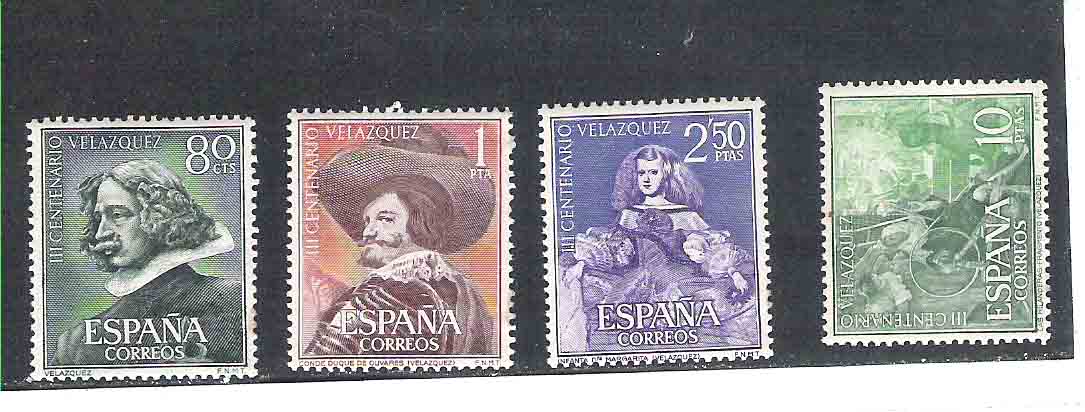 Spain postage stamps, scott #983-986. Unused, Never Hinged. Yellow spots on two of them.